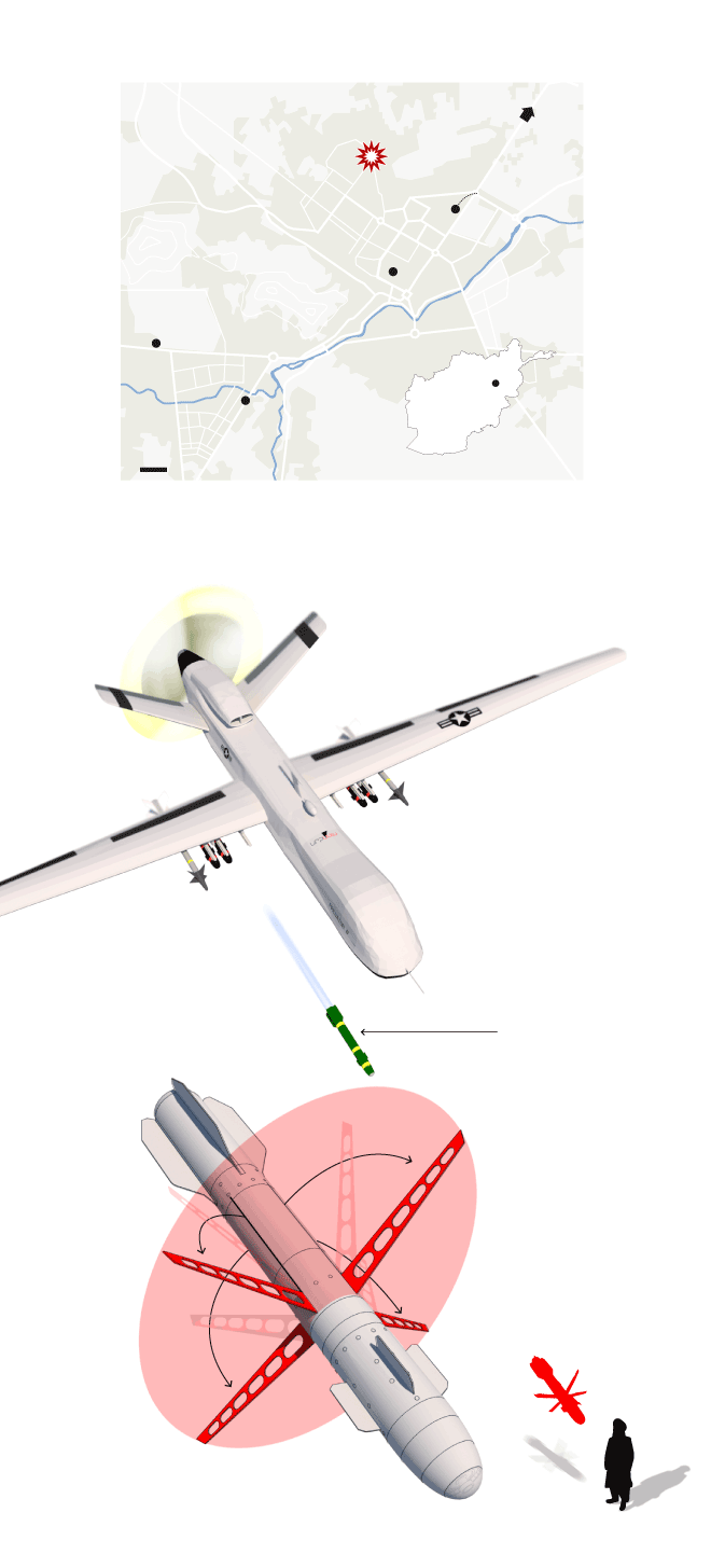 Οι πύραυλοι Hellfire R9X, που εκτοξεύτηκαν από drones στην Καμπούλ, κόβουν και καταστρέφουν τον στόχο χωρίς να προκαλέσουν έκρηξη, καθώς δεν υπάρχουν βόμβες μέσα.